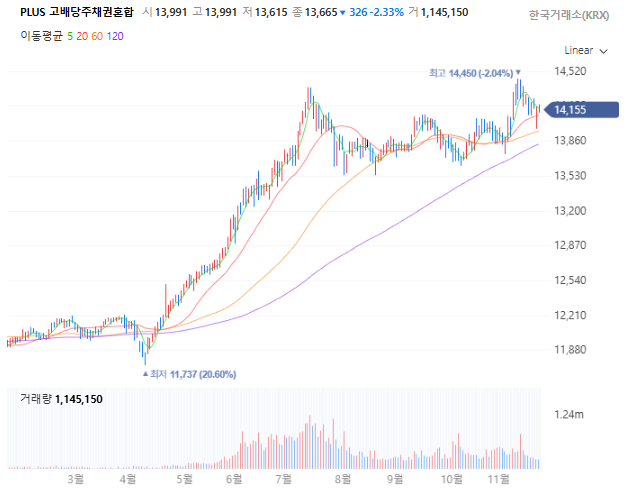 이 ETF는 채권 60%, 고배당주 40%의 비중으로 운용되며, 주식시장과 금리 환경이 모두 불확실한 시기에도 꾸준한 분배금을 지급하는 상품으로 주목받고 있습니다.