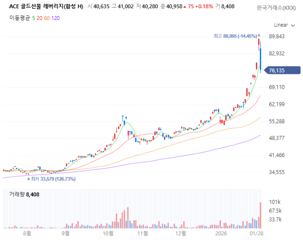 - ETF명: 한국투자 ACE 골드선물레버리지(합성 H)